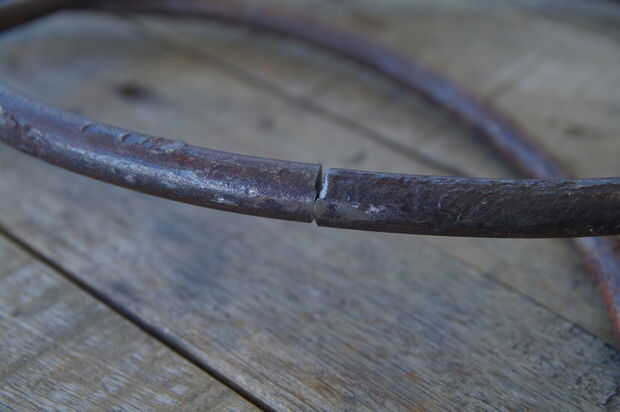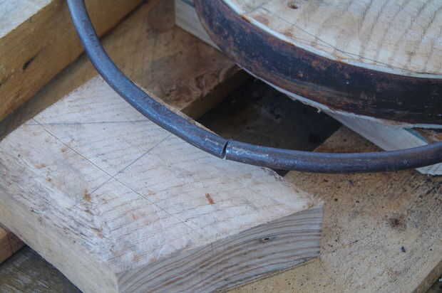 Mis barras de desecho provenían de un sitio de demolición cerca y deben haber sido oxidación allí hace unos 30 años. Fueron muy mal dobladas y tenía algunos problemas a escala moho serio también. Sin embargo, uno de ellos era un 12mm una gruesa, que pensé que sería genial para el anillo inferior.