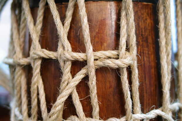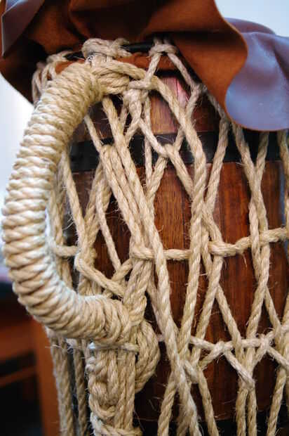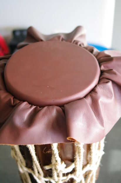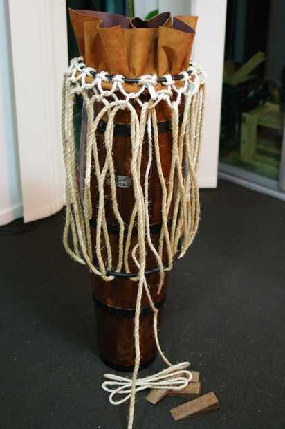 El bruto se ve del atabaque soy después utiliza un anillo + cuerda de tensión sistema.