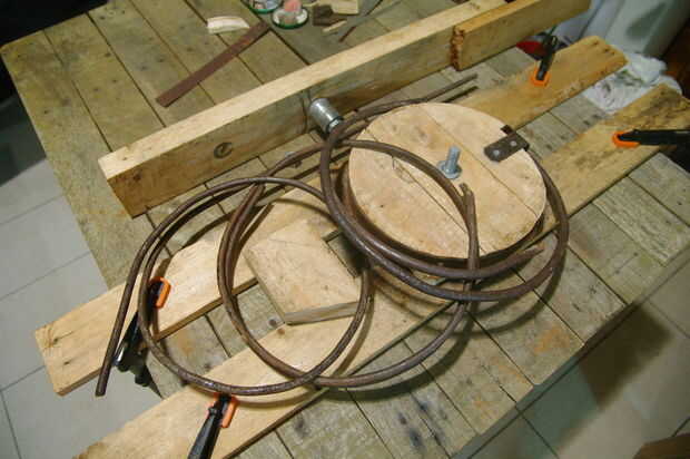 Con varillas rectas, ahora era el momento de doblar en forma. Después de mucho investigar sobre el tema, he construido una plantilla de flexión inspirados de la dobladora de mandril para tubos de muestra en youtube.
