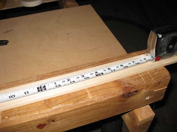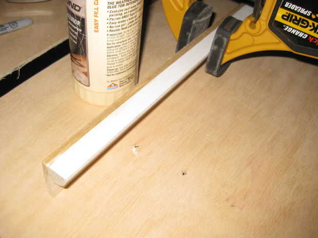 Ahora toma la álamo artesanal y pequeña moldura y corte hasta 18". Poner pegamento de madera en un lado de la moldura y fíjelo a la parte inferior de la tabla de álamo. Fijarlo con la abrazadera y deje que se seque.