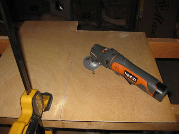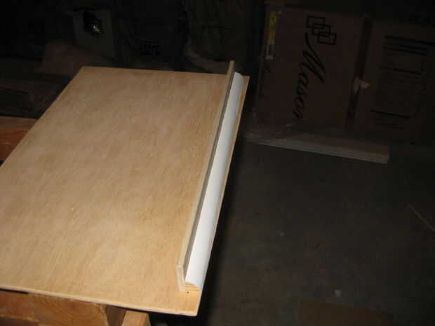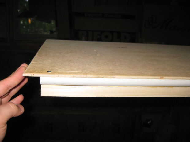 Finalmente fije conjunto a la parte inferior de un lado de la hoja de madera grande. Utilicé tornillos para ayudar a mantener Junta mientras seca el pegamento, pero eso es opcional.