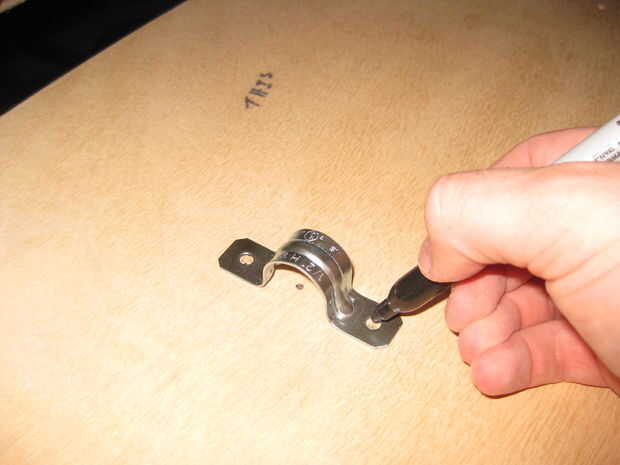 Ahora perfore los orificios para que los soportes. Utilice una broca de aproximadamente el mismo tamaño como los tornillos más pequeños. Poner unos 5" en el borde corto y en el centro. Luego marque donde los agujeros son y taladran.