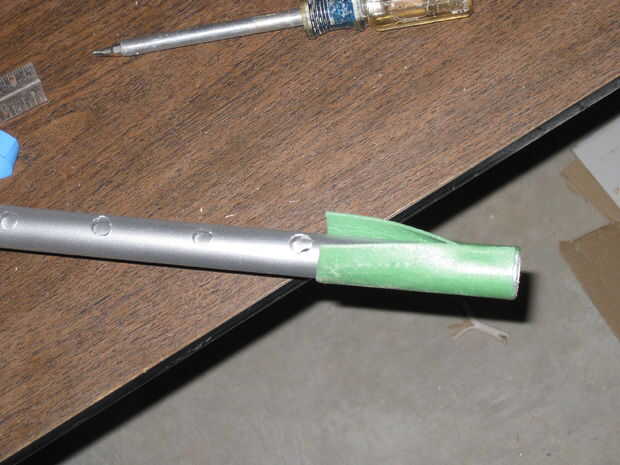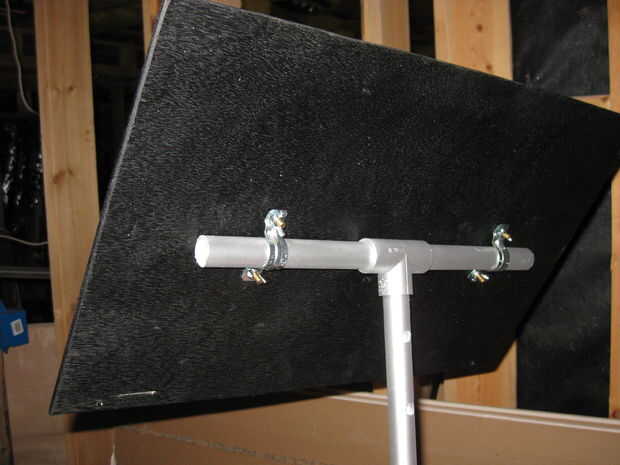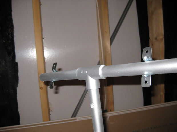 En primer lugar, tomar la Asamblea de PVC en forma de T y un poco de la espuma de la manía en la parte inferior del lazo. Cinta o pegamento la espuma. Utilicé algunos subsuelo aquí de una reciente renovación pero hará cualquier tipo de espuma. Esto es simplemente para ayudar a los tubos se encajan mejor.
