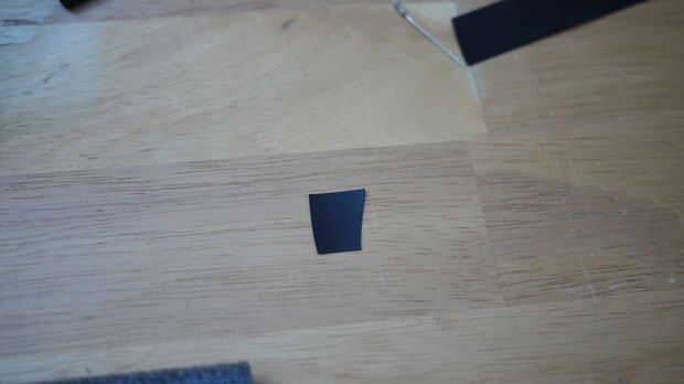 Cortar aproximadamente 1/2"(8mm) pedacito de cinta adhesiva y enrollar de borde corto. Doblar el rollo por la mitad. No quedarse pero poner un buen pliegue en él. Esto Conecte la parte inferior del sensor y mantener luz esa manera.