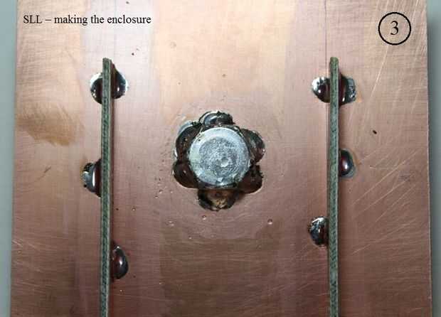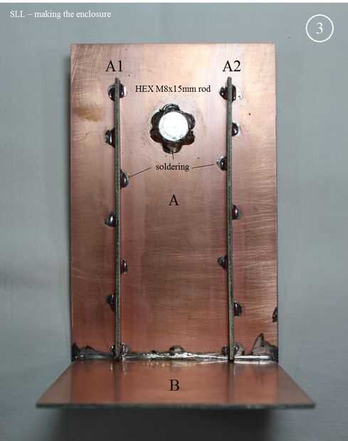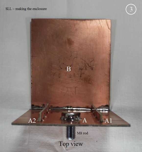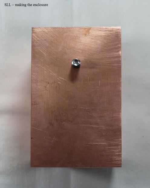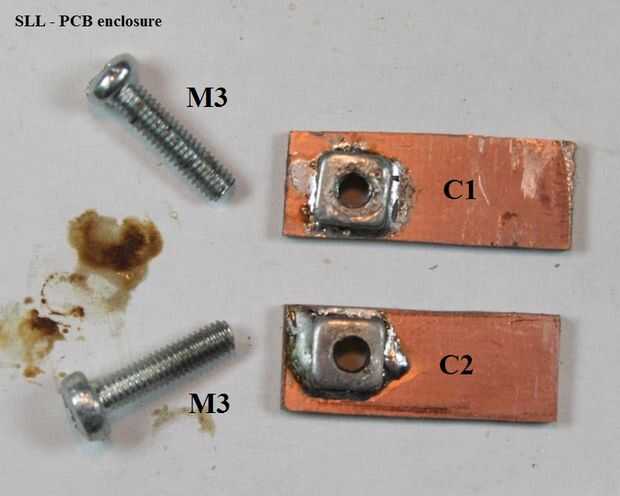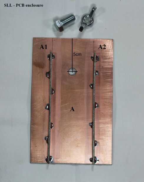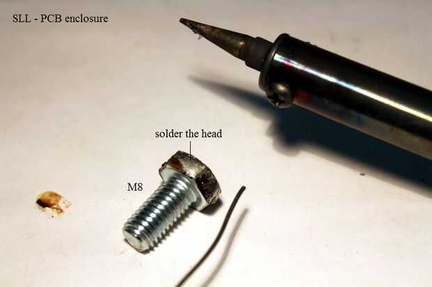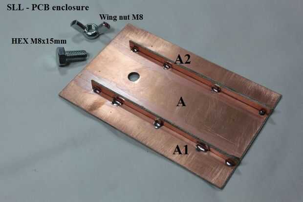 Está hecho de cinco PCB de cobre de un lado, una pieza de plexiglás de 3mm y un tornillo hexagonal M8.