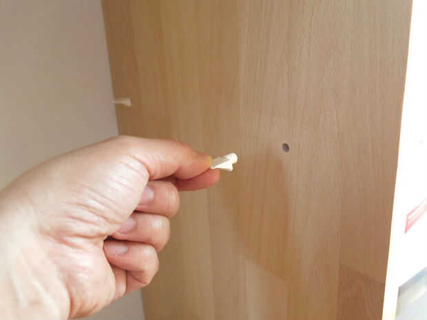 -Agujerear los agujeros dentro de los tableros laterales (una vez más, no a través) y dentro de la Junta de centro (esta vez, ir a través. Añadir pernos de estante.