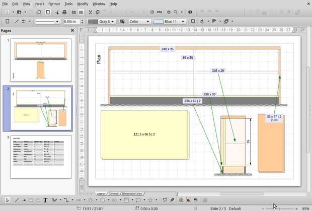 En mi caso, como el diseño es muy sencillo, hice un plano en LibreOffice Draw, en un 1:10 escala.