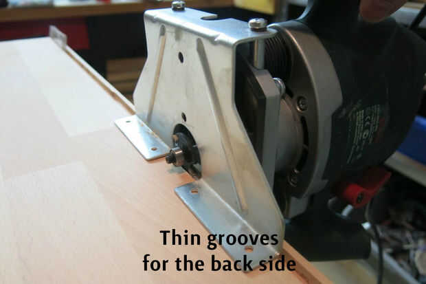 -Como borde delantero del tablero inferior se retranquea ligeramente del borde delantero del tablero superior, la posición de la ranura debe medirse por lo que su distancia a la parte trasera es la misma para el tablero de la parte inferior y superior.