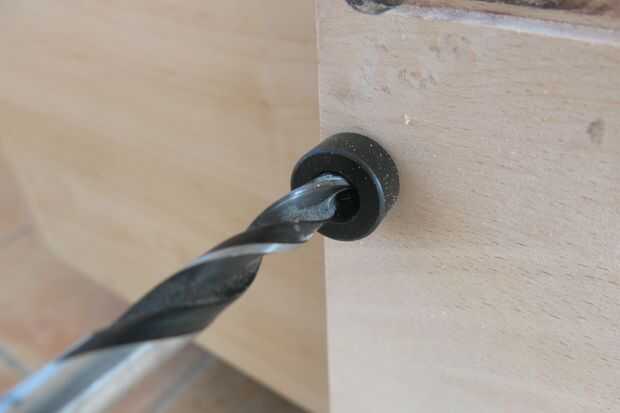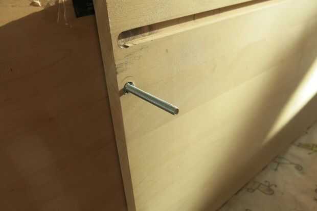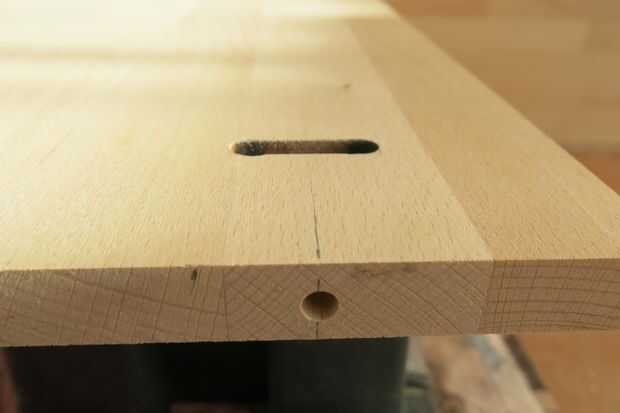 -Hacer un agujero (alineado con el inserto roscado en el tablero superior, desde el borde de la ranura.