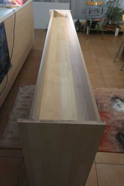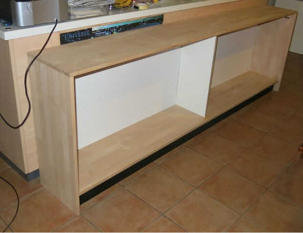 -El zócalo delantero y trasero puede apretarse a la parte inferior del tablero inferior y el interior de los tableros laterales, utilizando tacos. También puede ser pegados en el tablero inferior.