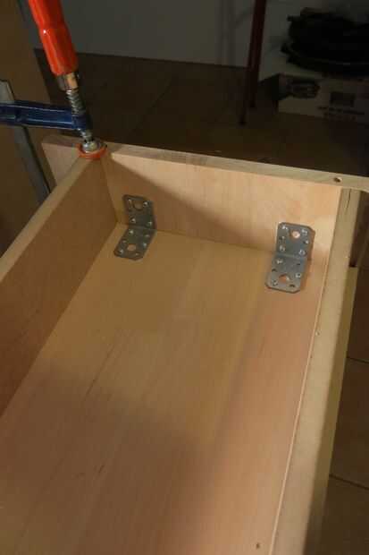 -Con escuadras y tornillos, apriete la junta inferior a los tableros secundarios. Esto es feo, pero no será visible.