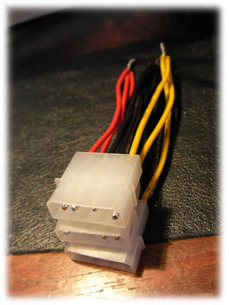 2). -Unir todos los cables como se puede ver en la imagen. (Algunos ATX tienen más de 3 conectores molex, pero con 3 ya tienes más que suficiente para este proyecto).