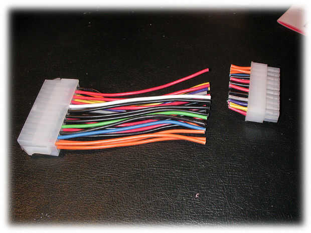 Usando una combinación de bloque de conexión todos los cables. (esto se hace así si los golpes ATX no necesita cortar o soldar ningún cable, simplemente desconecte la unidad rota y conectar uno nuevo)