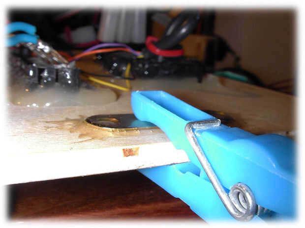 Hay un montón de cables por lo que la puerta se tiende a abrir. Lo solucioné esto es con una captura de imán. Atornillar el pedacito de imán al recinto y había pegado la broca metálica a la puerta con algunos epoxy.