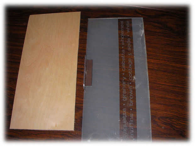 Para mi fuente de alimentación del banco va a utilizar una caja de pan. Éste tenía una puerta de cristal, así que lo primero que hice fue reemplazar el vidrio con un panel de madera. He añadido este paso en caso de enfrentar el mismo problema, pero si está listo para funcionar, el encerrar salte al siguiente paso.