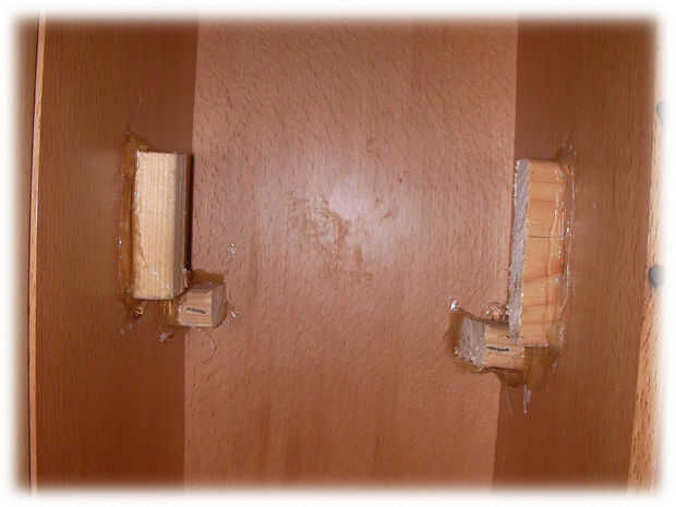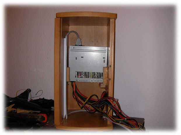 El objetivo de este proyecto debe ser capaz de cambiar el ATX muy rápido y sin tener que sacar los tornillos, así que cortar 4 piezas de madera y luego caliente pegado a los lados de mi recinto después marca con un lápiz donde iré, así puedo deslizar el ATX o muy fácilmente.