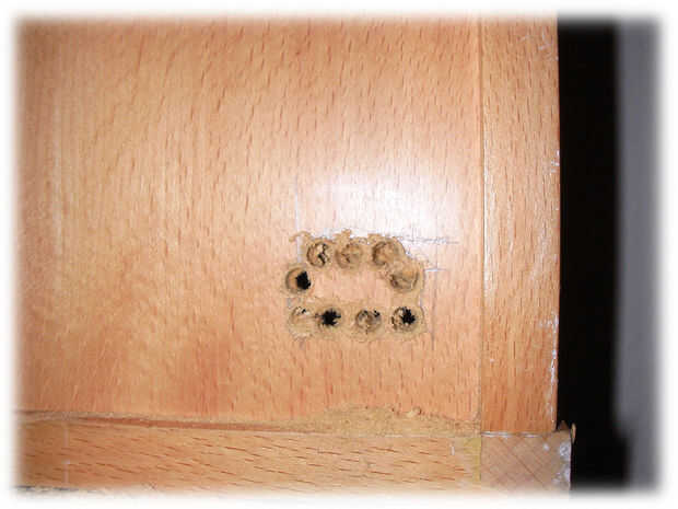 1). -Marcar el lado del conector con un lápiz, algunos agujeros cerca de la línea que trazaste y terminar el trabajo mover el taladro de un lado a otro hasta que todos los agujeros se fusionan.
