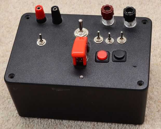 Aquí es la que hice usando la caja de un proyecto y unos interruptores de maplins. Aviso el interruptor principal de la descarga es bajo un tipo de lanzamiento de misil rojo de la cubierta.