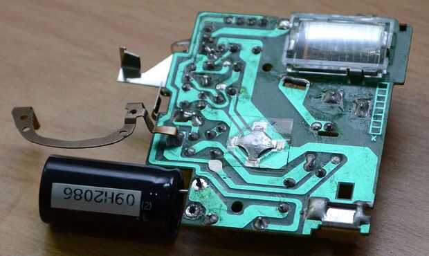 Una vez que lo tengas abierto debería ver algo que se parece un poco una batería AA, esto llama un condensador y puede llevar una carga en la región de 330. Puede conservar este cargo durante meses por lo que descarga antes de que se puede tocar.