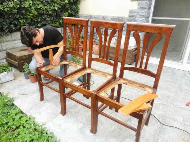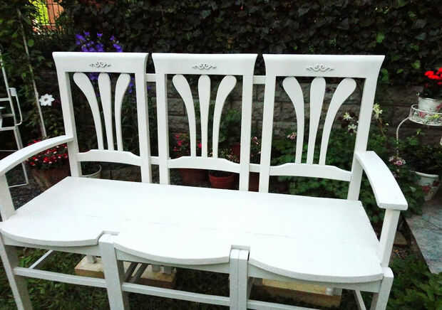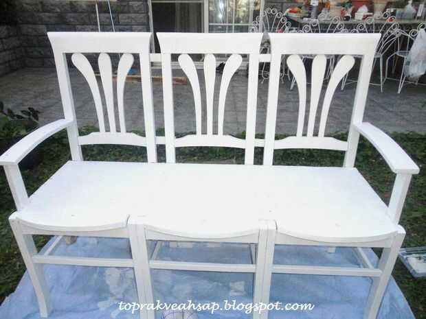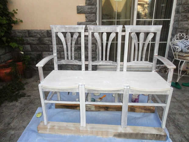 Este proyecto es bastante básico y se basa en un pensamiento creativo y técnicas de construcción de muebles simples para construir. Su consta de tres sillas antiguas individualmente únicos que se unen a un asiento a través de los respaldos de la sill