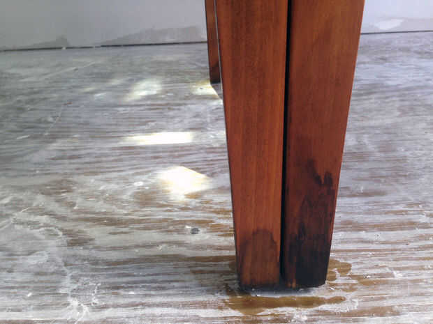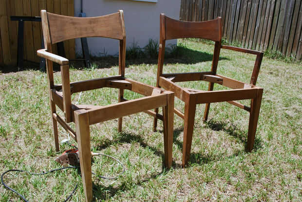 Una vez sus sillas hasta la madera preciosa, encantadora, puede aplicar un acabado. Elegí sólo frotar aceite de bloque de madera para que pudiera mantener todas la manchas y el carácter que se había hundido en la madera en los años (además de que tenía algunas gallinas, para que sepas, que tomó la decisión muy fácil). Aplique con un paño limpio y frote siempre en la dirección de la veta de la madera.