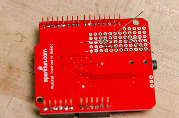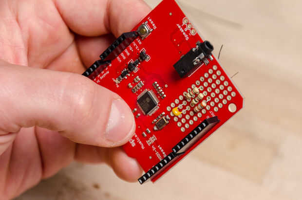 El escudo del tirón otra vez. Coloque el condensador (C1) por encima de las resistencias, justo encima de R2 y R3.