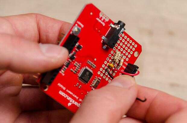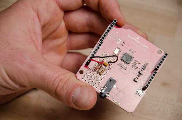 La Junta hacia la parte delantera del tirón e Inserte el otro extremo del cable a la toma de cabecera con la etiqueta "GND" (justo encima de "AREF").