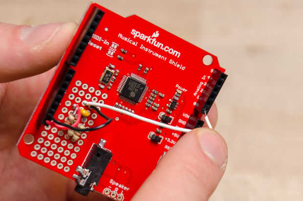 Voltee la placa y soldar el extremo del cable en su lugar.