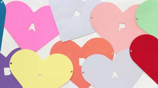 Recoger todas las cartas y establecen con el fin de decidir si está satisfecho con la gama de colores. También he añadido una forma de corazón en blanco, sin una carta, en el principio y el final de cada palabra.