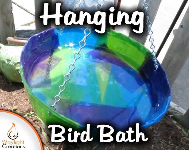 Amy ha querido hacer un baño de aves desde hace algún tiempo. Ella pensó que sería cool para hacer el baño de una manera tal que sería capaz de atrapar la luz y ser muy colorido. Lo hizo utilizando papel de seda y resina. Colgando del gancho de pastor fue una idea cuando estábamos tratando de averiguar cómo poner en un pedestal.