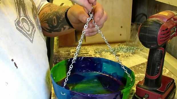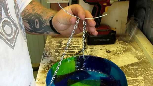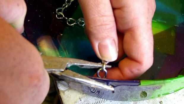 Luego les pellizcan todos juntos en el centro y todo junto con una longitud de cable. También puede usar un eslabón de la cadena para ello.