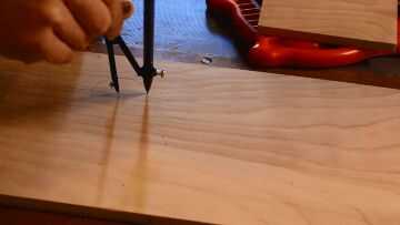 Para la 1/2" madera contrachapada, no olvide marcar el círculo de radio 1" antes de cortar el frente del cajón.