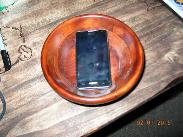 Opté por usar un cuenco de madera, porque creo que el sonido es mejor. Cristal sería un cierre en segundo lugar. Puede utilizar un recipiente de plástico o incluso un plato de papel. Sólo asegúrese de que su teléfono se ajusta dentro del recipiente. Convertir su música en el teléfono y coloque el teléfono en tazón de fuente con el altavoz del teléfono hacia abajo. Ajuste el volumen al traje. El tazón de fuente doble, si no triple el sonido. Parece más cerca el altavoz es el fondo de la olla sin tocar hace más fuerte. Estoy seguro de que cuanto más el recipiente, el más fuerte será su música. Si intenta esto, comentario abajo y dime lo que piensas.
