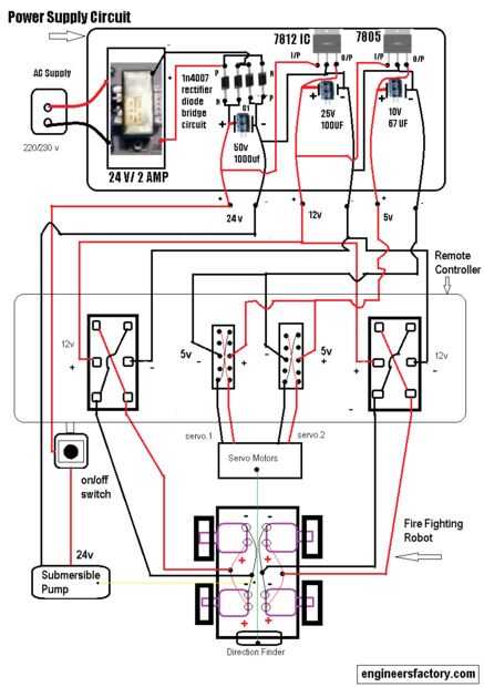 Ahora realice las conexiones entre la fuente de alimentación, control remoto y robots con la ayuda del alambre de la cinta. (Ver imagen de arriba)