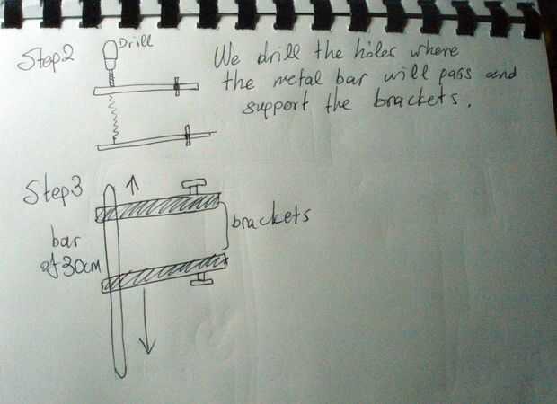 Ya que no tengo los soportes de doble capa ideal que decidí utilizar cualquier tipo de plástico que sea bastante fuerte para sostener cualquier PCB de tamaño. Encontré uno y esperaba encontrar y segundo una... Entonces mis notas se convirtieron como en pic1. La idea general es que tengo un pedazo largo de apoyo y en él dos soporte igual apretar el PCB. Simple. Así debe ser como la foto 2. Pero siempre un pero. En primer lugar tenía solamente un soporte suficiente como 30cm pero única. Este soporte fue de y la vieja computadora de Epson desde décadas atrás (desde 1993) y utiliza este soporte para encender el ordenador con el adaptador de red. El botón externo fue conectado con este pedazo de plástico y terminó en el interruptor de la fuente de alimentación... Es muy fuerte y difícil de freno. Por lo tanto