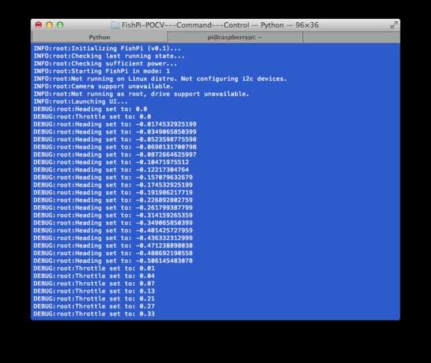 FishPi no es diferente. El software de mando y Control en desarrollo para el POCV es open source. Tenemos un repositorio en GitHub (link) donde puedes descargar una copia de su propio, o ayuda con el desarrollo y de bifurcación de nuestro repositorio. Puedes seguir las actualizaciones en desarrollo software en.