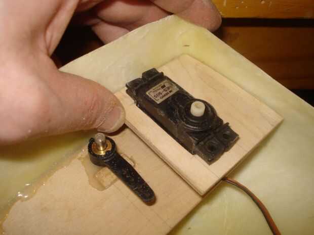 En la parte posterior se añade el soporte superior del servo. Un empalme universal conecta la salida del motor con el árbol de transmisión. Algunos deben ser tiempo alinear correctamente los dos antes de fijar definitivamente el árbol de transmisión y montaje del motor en su lugar.