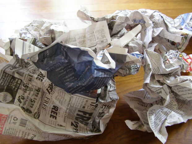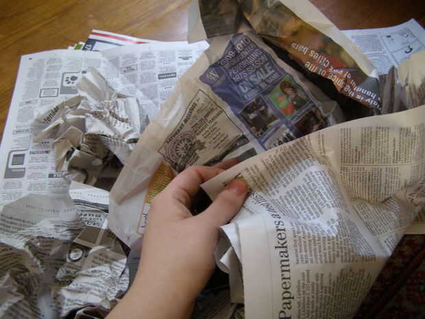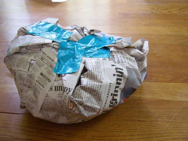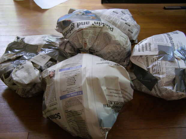 Envuelva el arrugado bolas en otras hojas de papel y cinta de que ellos cerrados. (son fáciles de manejar de esa manera)