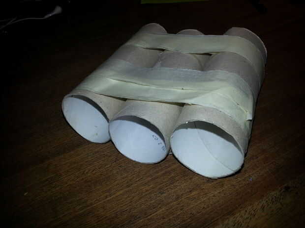 envolver la cinta de enmascarar alrededor de los tubos de papel higiénico hasta que estén planas y seguro.