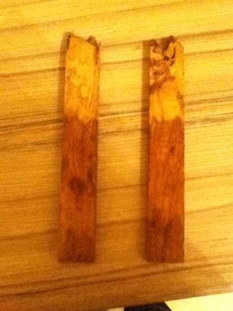 Obtener o cortarse pequeñas tablas que se ajuste a su manija, decidir el grueso usted mismo, pero encontré unos 9mm fue buena.