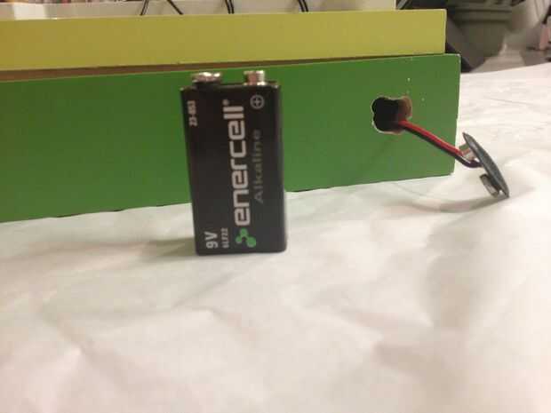 Taladré un agujero en la parte inferior de la caja de modo que pude sacar el clip de la batería a través de y ser capaz de conectar y cambiar las pilas desde el exterior del proyecto.