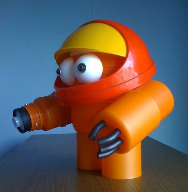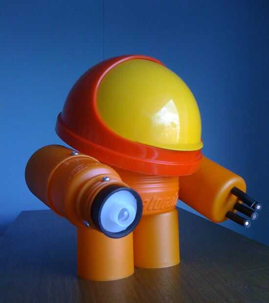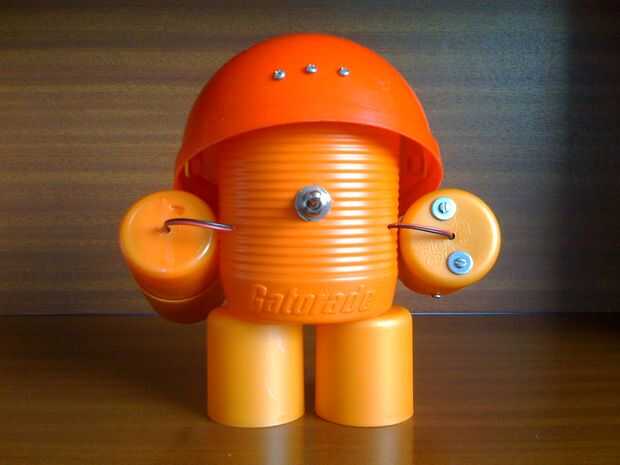Un día, yo estaba jugando con mi basura buscando algo que construir. Quería hacer un bote de Gatorade naranja (donado por mi hermano) en una maceta. Tenía dos macetas pequeñas plástico naranja (de la medicina de mi mamá) y un montón de tapas desodorante de pies (de los hombres de mi familia). Mmmmm... bueno, pero todavía falta algo. Entonces, me di cuenta de la parte superior del bote de basura donado por mi Tía María Isabel ("Usted podría hacer que un astronauta!", dijo). Lo pongo sobre el bote de Gatorade.