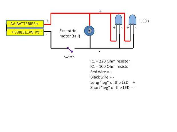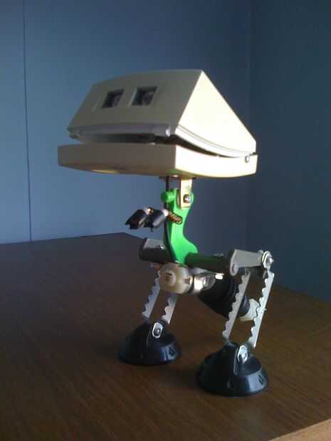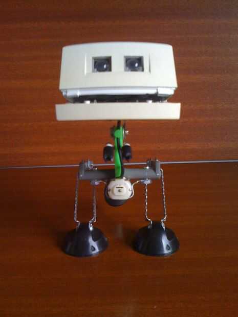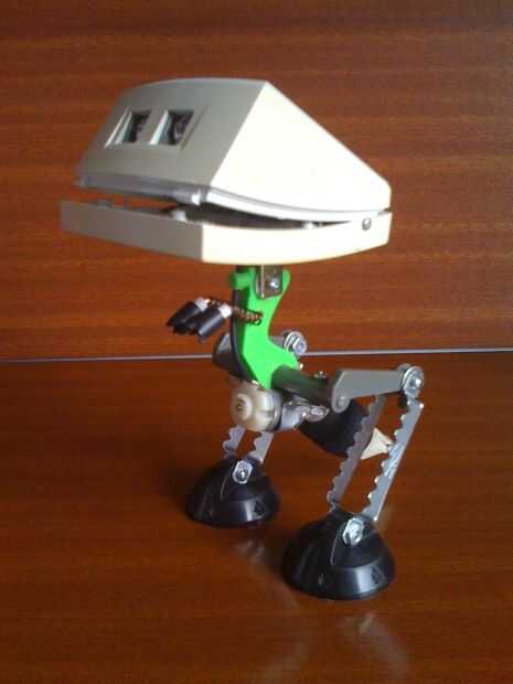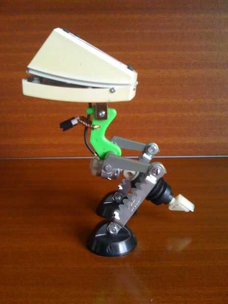 Te invito a hacer ingeniería inversa a Yoshi. ¡ Es fácil! el circuito eléctrico es casi el mismo de Samus (sólo agregar uno más. Pero no hay problema, hice el diagrama). El peso excéntrico es la cola. Y la cabeza es de un antiguo identificador (ideal, porque tiene el soporte de pilas incorporado y listo los agujeros para los ojos).