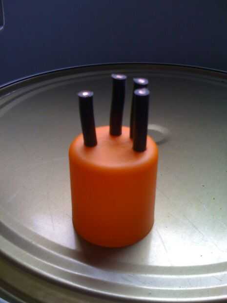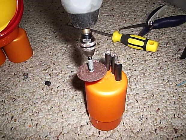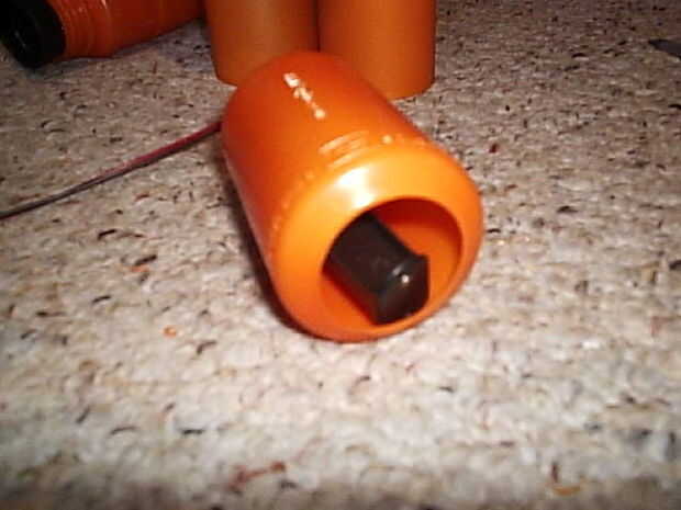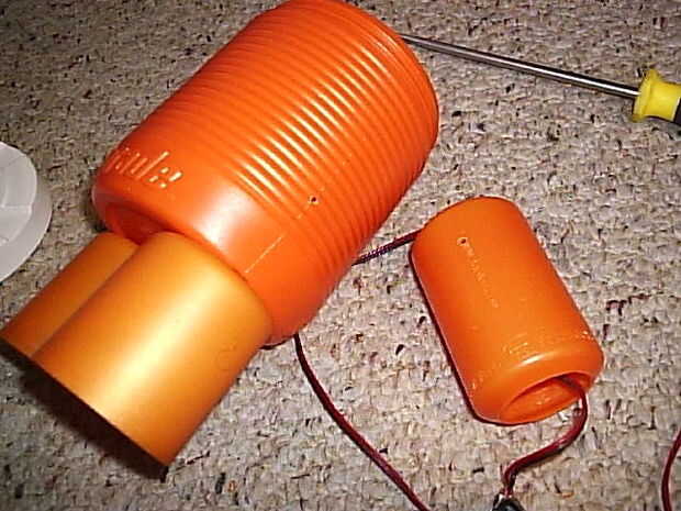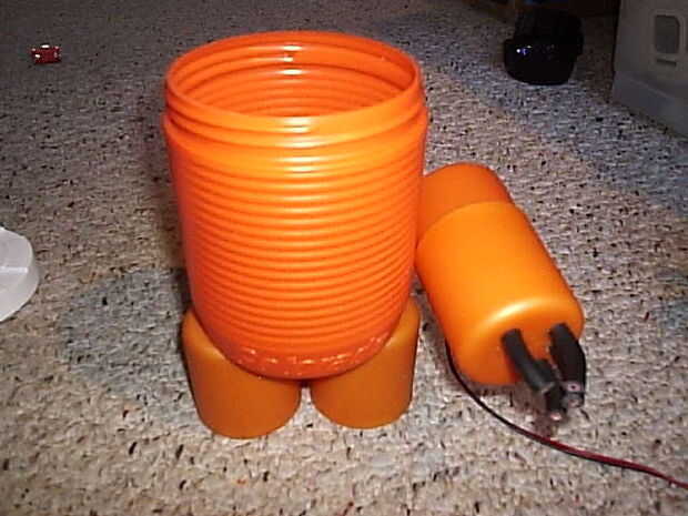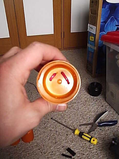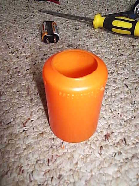 pero la idea es utilizar una tapa de desodorante alimentación como la palma de la mano, que encaja perfectamente en el bote de medicina. Así, si usted quiere cambiar las baterías, sólo tienes que quitar la mano para esta acción, cambie las pilas, poner en otra vez la mano y listo para la acción.