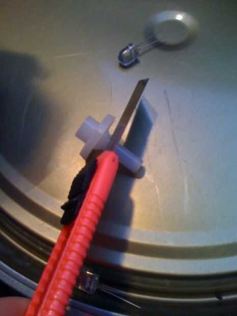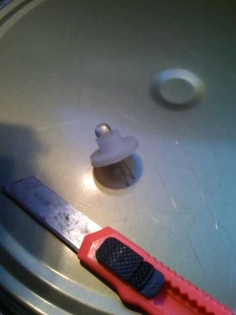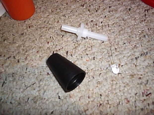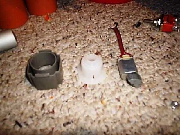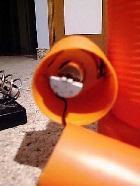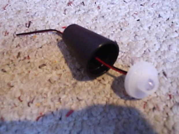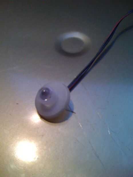 Para instalar el LED en el mular de bote de medicina, cortar la boquilla de alcoholímetro y el LED dentro de la casa, soldar los cables negro y rojo y luego poner el resultado en la pieza cónica de plástico. Inserte la pieza cónica en el mular de la olla y fijar con tornillos.