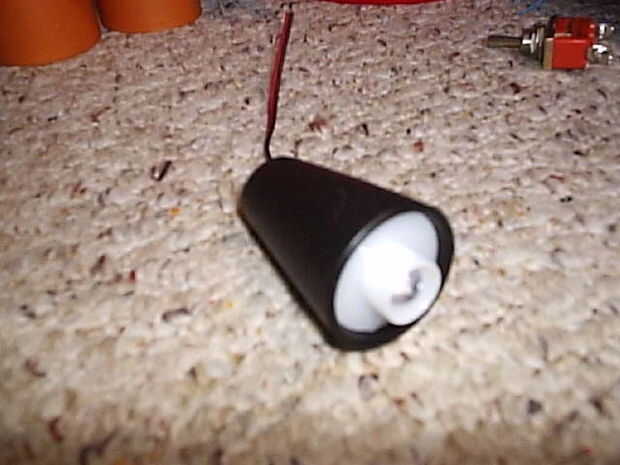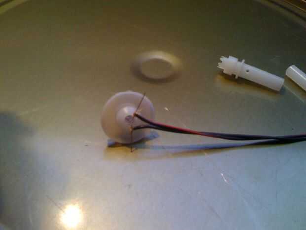 En la tapa del desodorante, instale el motor (peso excéntrico previamente conectado). Puede utilizar diferentes piezas de plástico que lo acoja, o puede usar epóxico. Soldar los cables a los bornes del motor.
