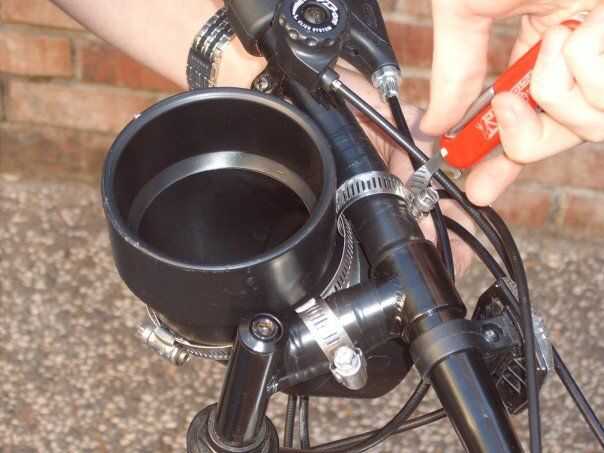 Fijar el tubo al manillar con las pinzas más pequeñas.