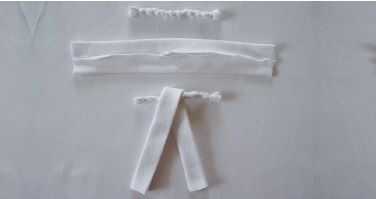 Para las piernas, use una tira de 5 x 13 cm (2 x 5 1/4) de punto de algodón. Doblar en la misma forma que los brazos. Cuelgue la tira doblada en el centro de los brazos y usar hilo resistente para atar las dos mitades juntas desde el doblez de 2 cm (3/4 pulg) para hacer el cuerpo. Bien transversales del viento el hilo alrededor de cada pierna.