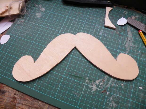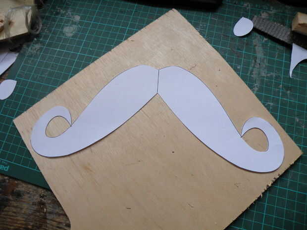 Usted notará que la plantilla tiene agujeros en él, donde los extremos de los bigotes del enrollamiento sobre. No corte los orificios de la madera contrachapada, aunque, o allí no será suficiente peso cerca de los extremos de los brazos para el efecto giroscópico completo, vital ocurrir.