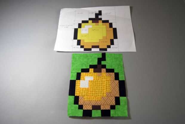 Cuando hayan terminado todas las 6 filas, coser juntos para la pieza de la manzana. El bloque debe medir 6-1/2 "X 8".